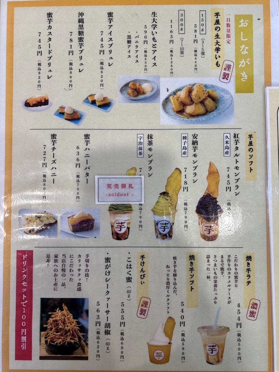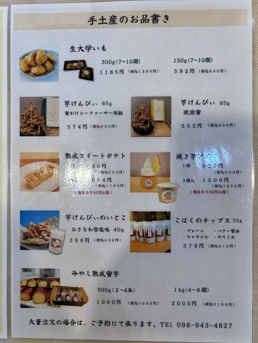 テイクアウト用の焼き芋やスイートポテトなども人気で、お土産にも喜ばれています。
