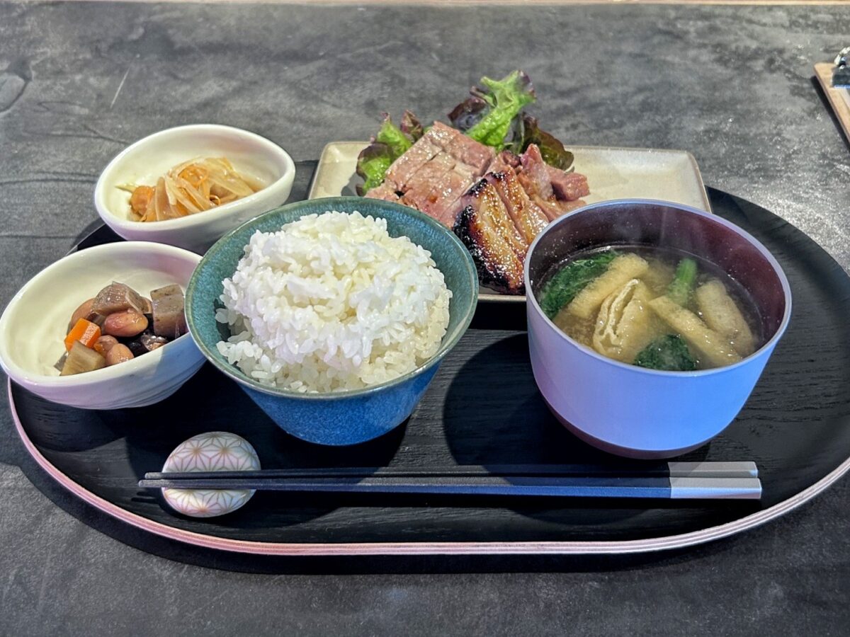 朝食メニューは日本らしい定食スタイルが中心で、ご飯、味噌汁、小鉢がセットになった心温まる和朝食が楽しめます。特に注目したいのが、「あぐー豚肩ロース西京焼き定食」。沖縄県産のブランド豚である「あぐー豚」を西京味噌で丁寧に漬け込み香ばしく焼き上げた一品は、豚肉の旨味と味噌のコクが絶妙にマッチしています。