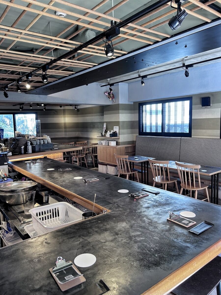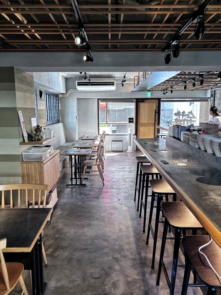 店内は和モダンな落ち着いた雰囲気で、温かみのある空間が広がっています。テーブル席の他にカウンター席も完備されているため、沖縄一人旅の観光客でも安心して雰囲気を楽しむことが可能です。